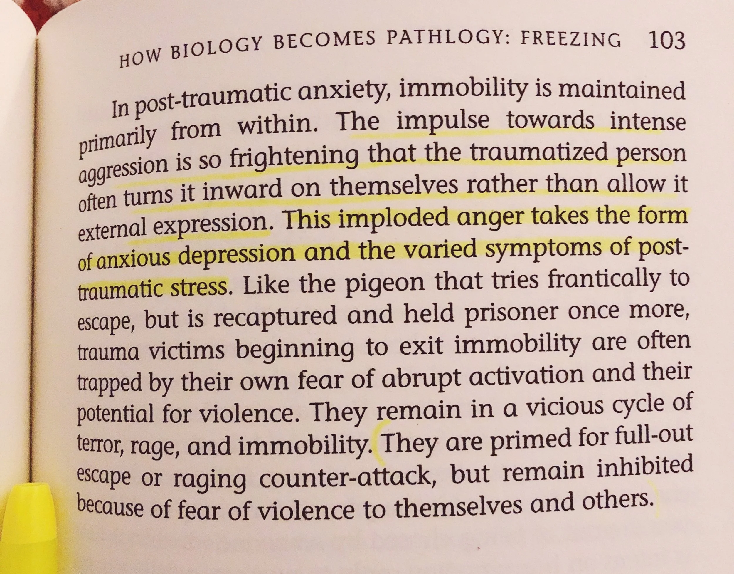 In the relationship with my mom, which is similar to a lot of instances in my life, I have felt this. Not being able to “fight”, not being able to “run away”, feeling helpless, and repeatedly traumatized. Post-traumatic anxiety and depression is real and I feel like I have not been able to fully discharge all the stored trauma over the past few years…mostly because I keep getting retraumatized by certain life situations.