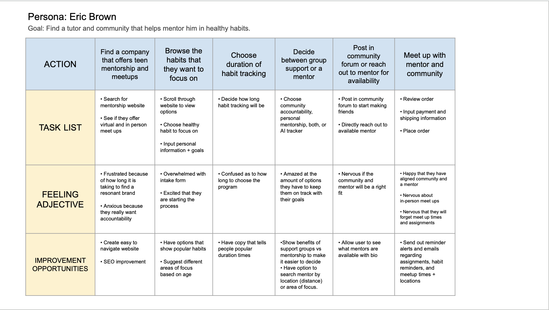 Test 1-2 additional participants. total of seven (7) people. - Continue research to see how users engage with the products. Research can eventually include how effectively users keep up with their healthy habits and how supported they feel with their mentor and community.